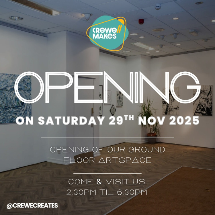The ground floor art-space will be open from 2.30pm until 6.30pm on the day of Crewe's 2025 Christmas Lights Switch-on, with everyone encouraged to check out the new venue.