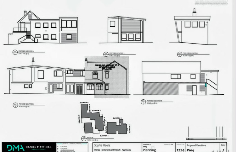 A planning document accompanying the application states: "This application is for the conversion of the former kitchens and ancillary accommodation (to the former Churche's Mansion restaurant) to nine studio apartments.
