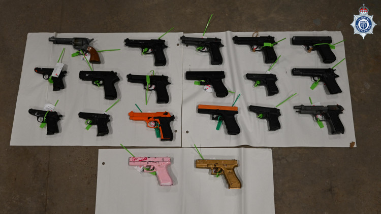Many of the firearms recovered from criminals have had their typically bright-coloured exteriors painted black to imitate real firearms.