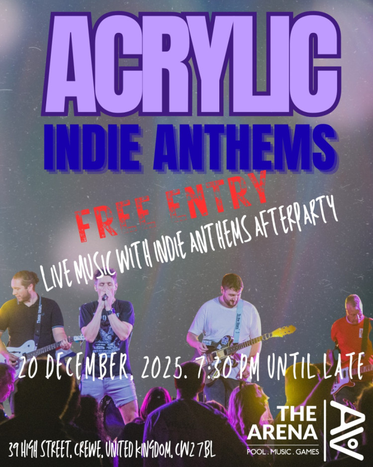 Acrylic are set to perform indie anthems live at The Arena on Saturday 20 December, the second of two free festive gigs.