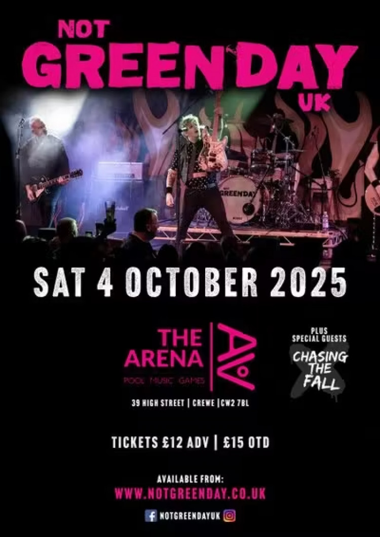 Not Green Day UK is live at The Arena on Saturday 4 October.