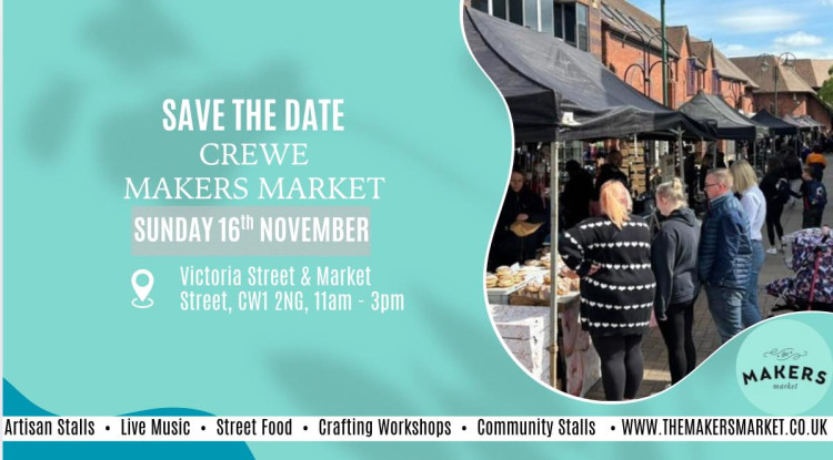Crewe Makers Market returns to Market Street and Victoria Street on Sunday 16 November.
