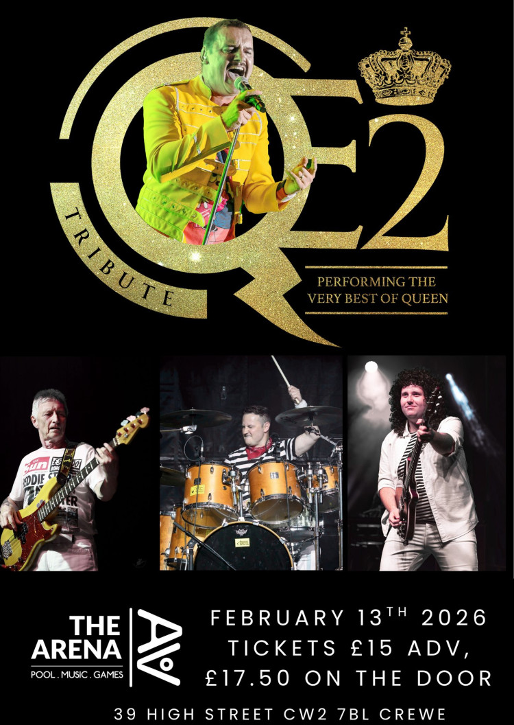 The Arena proudly presents QE2, one of the UK's leading Queen tribute acts on Friday 13 February.