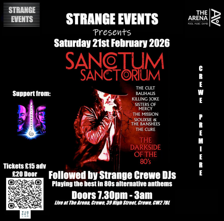 Also on Saturday - Sanctum Sanctorium: The Darkside of the 80s live & Strange Crewe After-Party @ The Arena Crewe