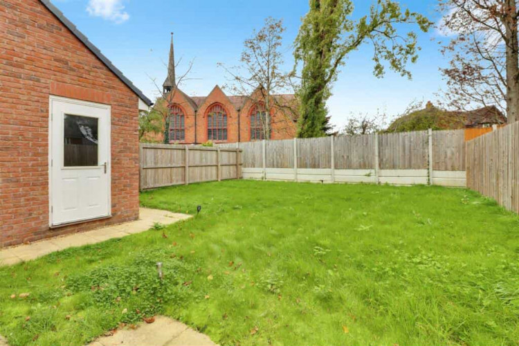 The rear garden is also well-sized and offers views of St. Barnabas Church tower, constructed in 1886.